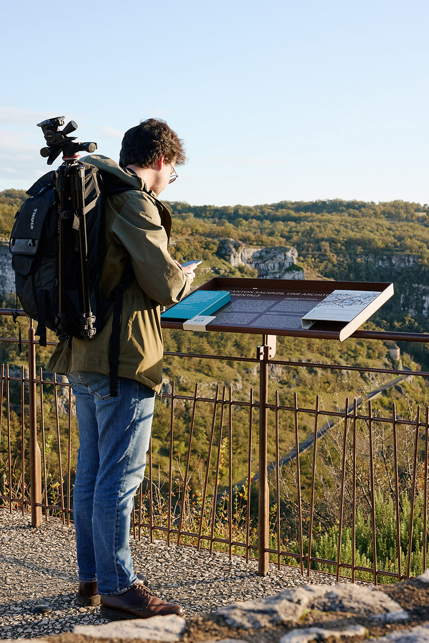 Cette signalétique interprétative vise à révéler les secrets du sanctuaire de Rocamadour inséré dans un site naturel remarquable. Le mobilier augmenté de capsules sonores invite pèlerins et visiteurs à effeuiller Rocamadour pour en comprendre toutes les strates historiques, géographiques, géologiques, architecturales, etc.